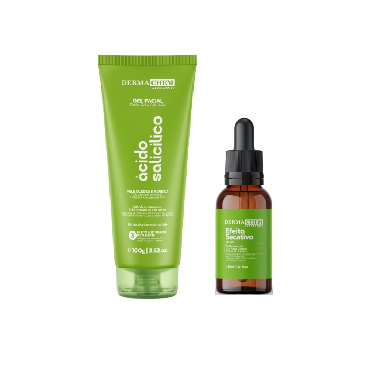 O Kit Rotina Ácido Salicílico da Dermachem Laboratory é a solução ideal para a limpeza de peles oleosas e acneicas. Inclui o Gel Antioleosidade, que auxilia no controle da oleosidade, revitalização e combate à acne, e o Sérum Efeito Secativo, que seca espinhas e previne seu retorno. Tenha uma pele radiante e saudável com nossa linha completa.