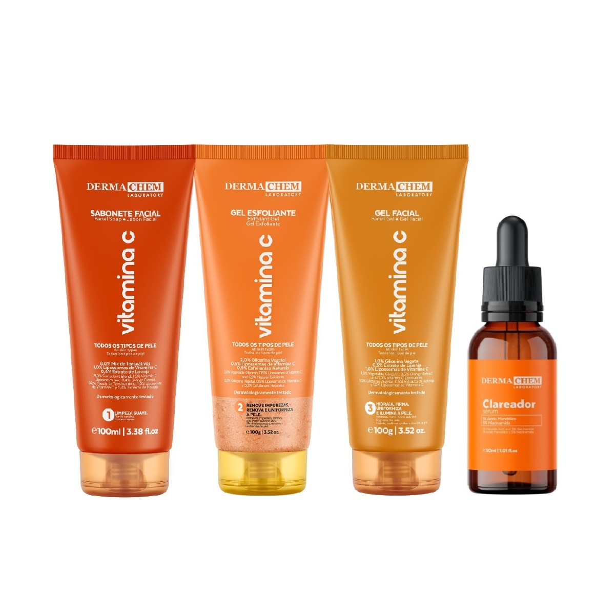 Apresentamos o Kit Solução Total Vitamina C da Dermachem Laboratory, ideal para uma rotina completa de skincare.